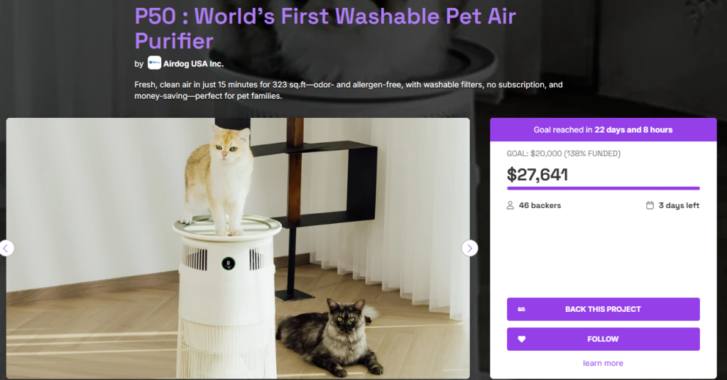 产品5:P50 : World’s First Washable Pet Air Purifier
