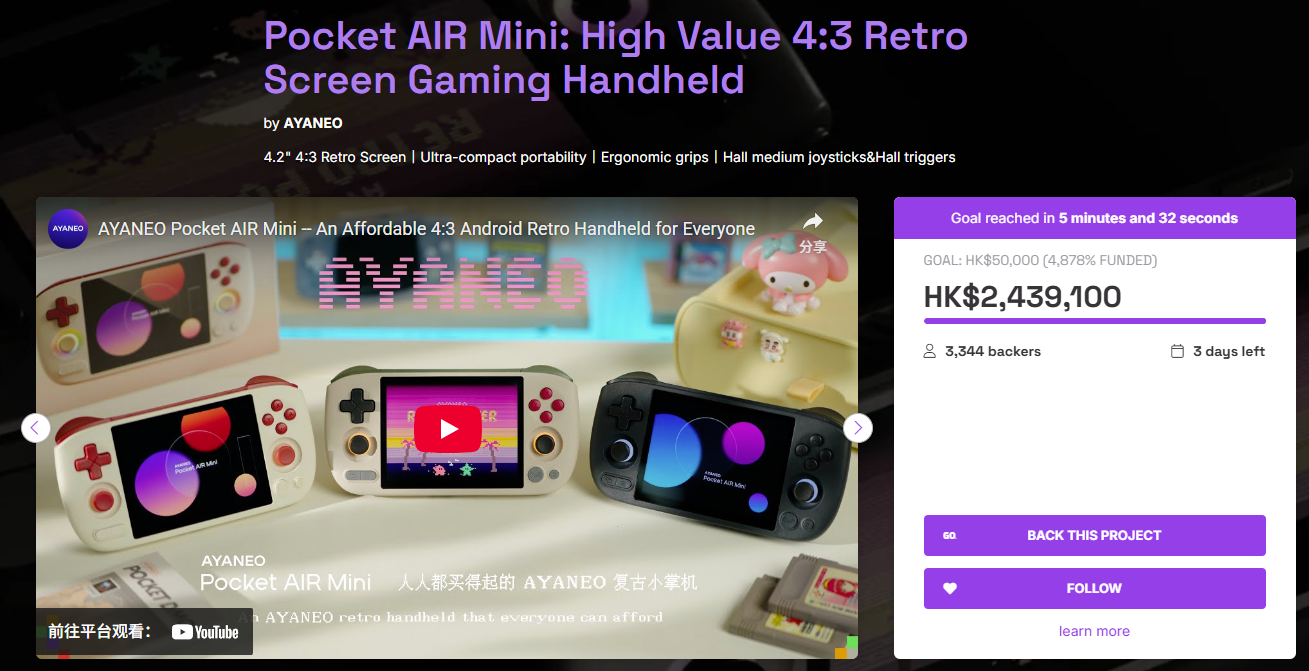 产品1:Pocket AIR Mini: High Value 4:3 Retro Screen Gaming Handheld