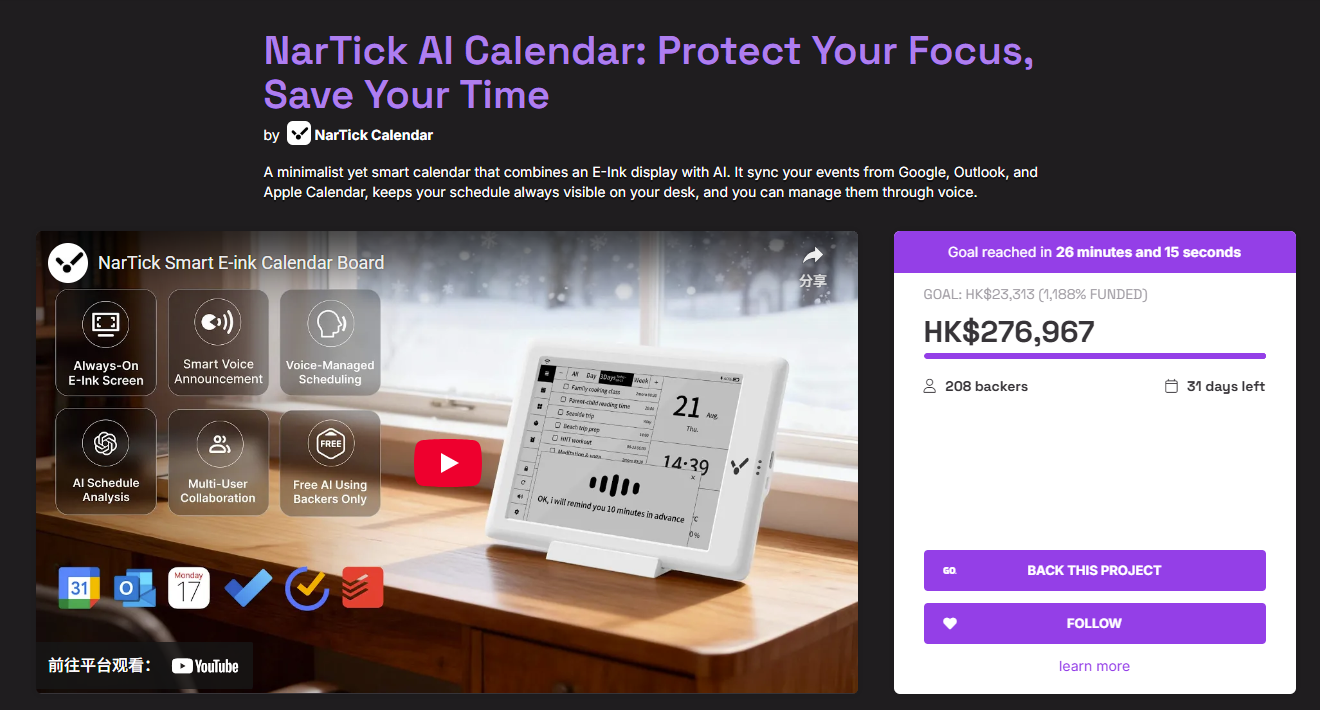 产品2:NarTick AI Calendar: Protect Your Focus, Save Your Time