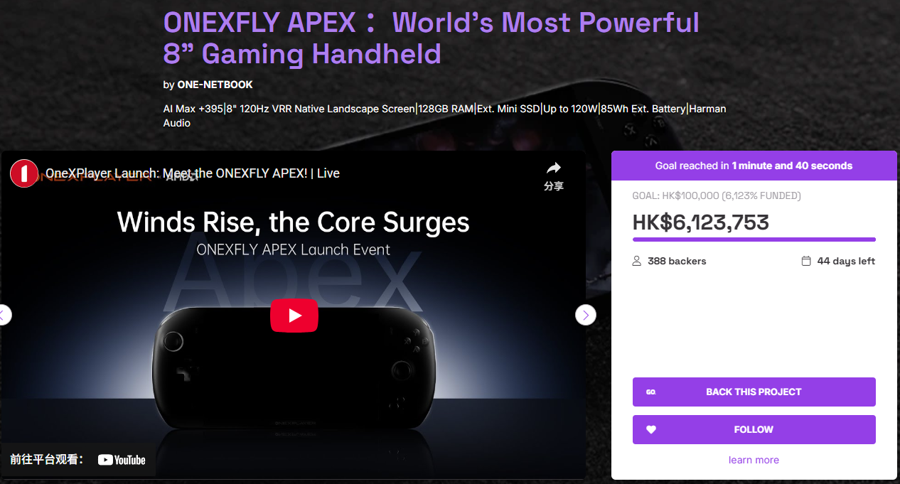 产品4:ONEXFLY APEX :World’s Most Powerful 8″ Gaming Handheld