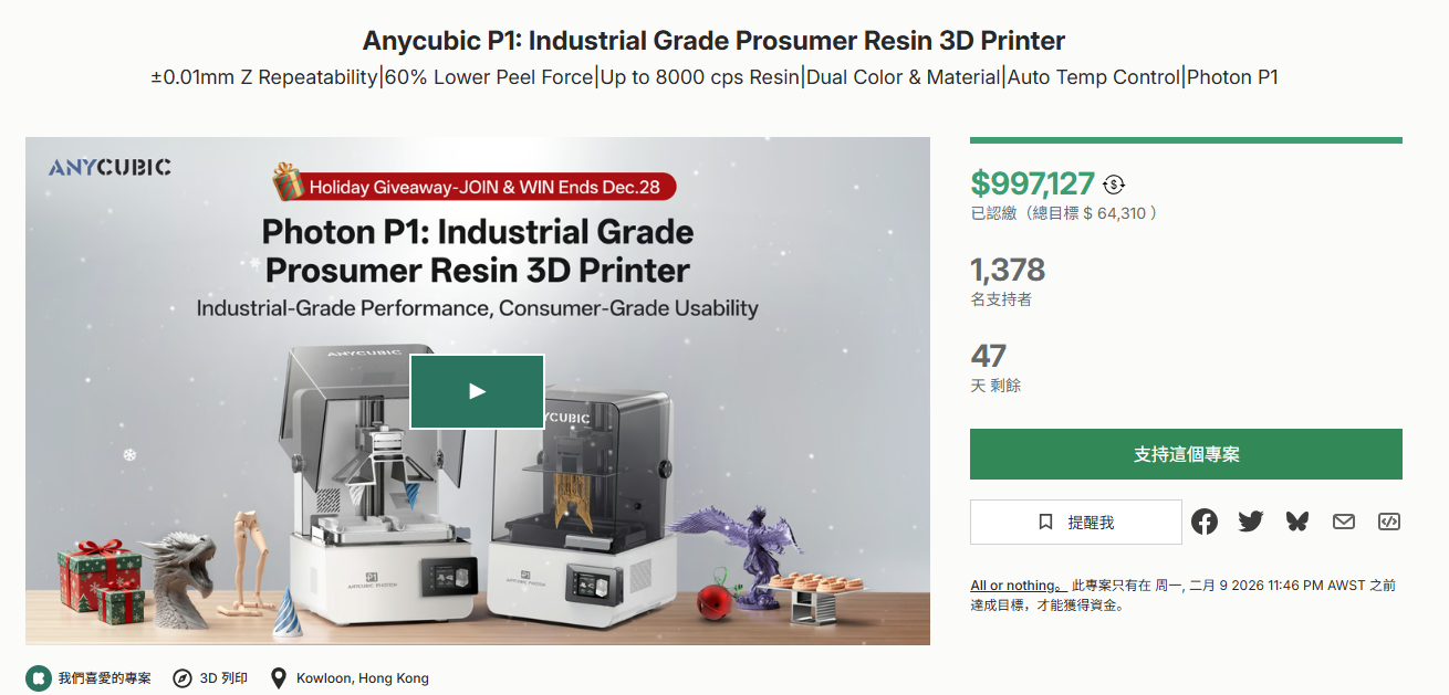 产品3:Anycubic P1: Industrial Grade Prosumer Resin3D Printer