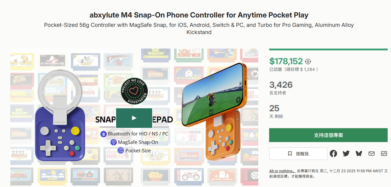 产品2:abxylute M4 Snap-On Phone Controller for Anytime Pocket Play