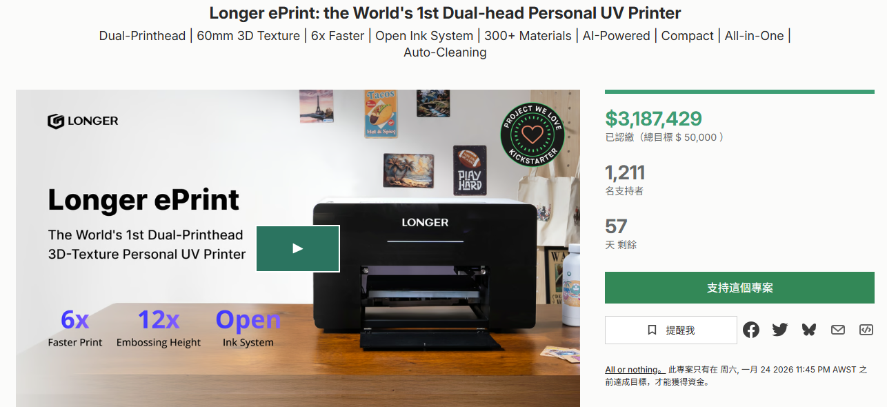 产品3:Longer ePrint: the World’s 1st Dual-head Personal UV Printer