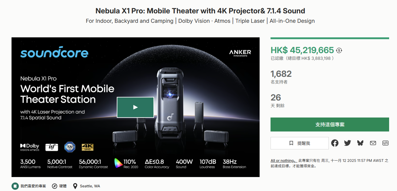 产品5:Nebula X1 Pro: Mobile Theater with 4K Projector& 7.1.4 Sound