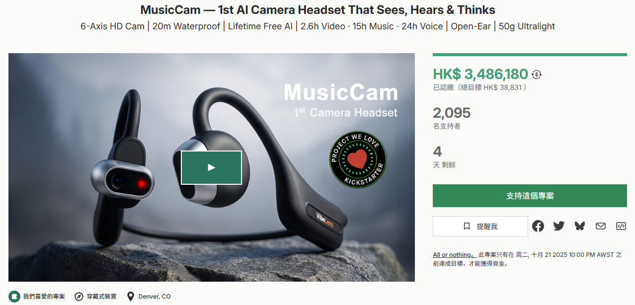产品3:MusicCam — 1st AI Camera Headset That Sees, Hears & Thinks