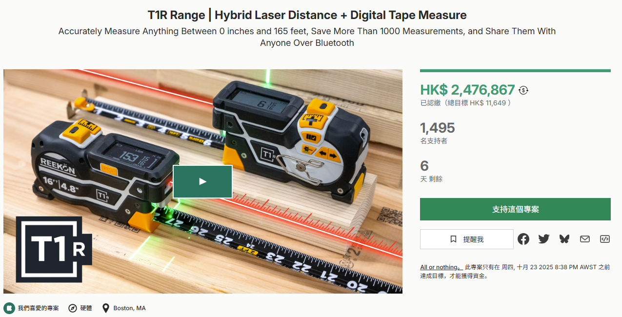 产品1:T1R Range | Hybrid Laser Distance + Digital Tape Measure